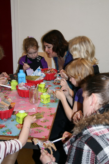 Diverse workshops, vooral voor kinderen; hier een beeld van een kleurworkshop tijdens de markt van vorig jaar