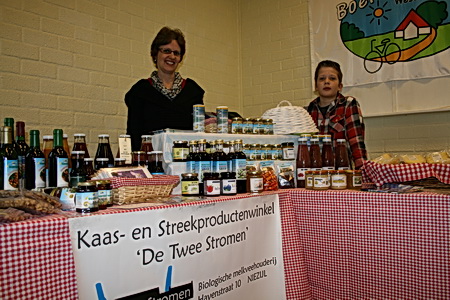 In de hoek is er ruimte voor "De Twee Stromen" (Niezijl). Moeder en zoon presenteren diverse smulzaken, van boerenkaas tot en met mollebonen...