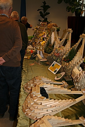 In de grote zaal op het podium dezelfde producten als vorig jaar. De bekende houten plantenhangers en diverse soorten honing, wijn etc.