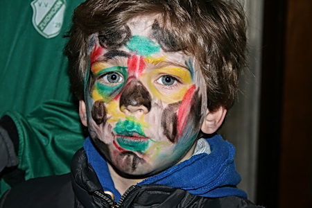 Kijk, een échte supporter, beschilderd en wel! Zo te zien zijn er ook kleuren bij van de v.v.Zuidhorn!