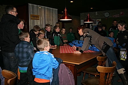 Deel 2 van de reeks gewijd aan de interland HOLLAND – BELARUS op woensdagmiddag 22 februari jonstleden. Plaats van handeling: Kunstgrasveld en sportkantine Zuidhorn. Kader: 7-weeks verblijf van zo’n dertigtal kinderen uit het zuiden van Belarus bij gastgezinnen en op de geref.basisschool “De Brug” in Zuidhorn. Zeven weken vol activiteiten, een daarvan de sportieve voetbalmiddag in kantine en op kunstgras. Gastvrijheid verleend door kantinebeheerder Eddy Gelsema en de voetbalvereniging Zuidhorn in de persoon van Edzo Stuitje. Organisatie werkgroep “Tsjernobyl-kinderen”, vertegenwoordigd door o.a. Fokje Kooistra en Angela Stenekes. Een warm gebeuren ondanks de februarikilte in de buitenlucht: