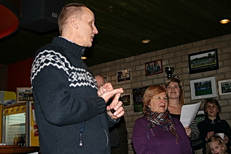 Gastheer en scheidsrechter Edzo Stuitje legt even gemakkelijk de bedoeling uit in het Engels als in het Nederlands, de tolk maakt er in rap tempo Russisch van... (Ik snap er niets van, maar dat doe ik toch al nooit van al die voetbalgesprekken....)