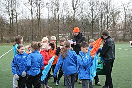 Een belangrijk moment wanneer de coach de hesjes uitdeelt en bekend maakt dat vanmiddag iedereen speelt!