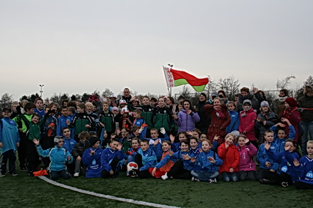 Het verblijf van zo’n dertigtal kinderen uit het zuiden van Wit-Rusland, zeven weken lang (of kort…) ondergebracht bij gastgezinnen en op de Geref.Basisschool “De Brug”, loopt naar zijn einde. De werkgroep “Tsjernobyl-kinderen Noordhorn” heeft eer van haar werk: Een geweldige organisatie met tal van bijzondere activiteiten! Een van die evenementen was afgelopen woensdag de voetbalkrachtmeting HOLLAND – BELARUS op het kunstgrasveld in Zuidhorn. Een ware happening voor de kinderen, de leerkrachten, de ouders en de fotografen! Hierbij de derde reeks foto’s, illustraties van een blije gebeurtenis: