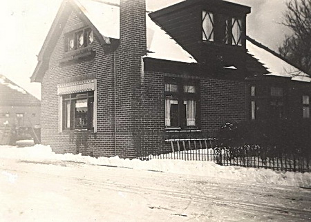 Hetzelfde woonhuis, vanaf iets grotere afstand bekeken. En in kleur….. Nu met de grote werkplaats/garage ernaast aan de noordkant.