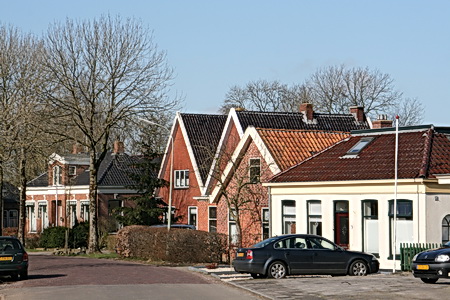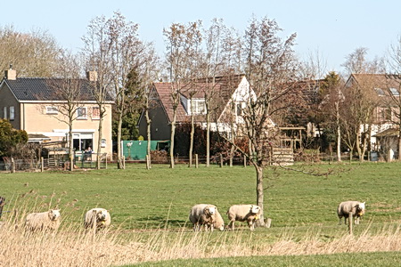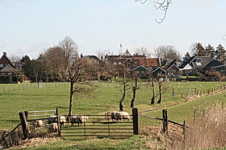 Prachtig, de schapen op de voorgrond die met elkaar converseren over die rare kiekers bij de straatweg. De achterkant van de huizen aan de Langestraat, waar bewoners al buiten kunnen zitten, “weg met de winter!”