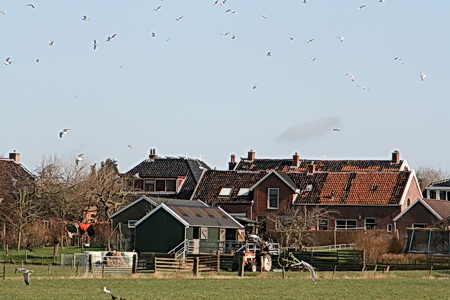 De achterkant van de huizen langs de Langestraat (Midden) blijft me boeien, vooral dat gedeelte met het vroegere Fleerkamp-pand, waar nu o.a. Rieuwen Nanninga ‘boert’. Of zijn het de meeuwen die, opvliegend, de aandacht naar zich toe trekken? (De soorten meeuwen hou ik niet uit elkaar. Zijn dit nou zilvermeeuwen? Of stormmeeuwen? Mantelmeeuwen? Mijn vader noemde al deze imponerende vogels “zeemeeuwen”, maar dat is een oneiglijke aanduiding).