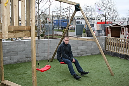 Aan de Industrieweg 4 op het Noordhorner bedrijventerrein is een indrukwekkend complex ontstaan onder de naam Hummel Tuintotaal bv. Jeroen Hummel, naamgevende ondernemer, leidt me rond langs tuinhout, straatstenen en ook de uitbreiding aan de westkant wordt niet vergeten. “Kijk, je kunt precies zien welk gedeelte er dit jaar is bijgekomen!” Een deel van het terrein (overgenomen van autohandelaar Staal) ligt nog braak, dat komt nog aan de beurt, er is o.a. een kas gepland. Het gesprek zetten we voort in de bescheiden kantoorruimte, bekertje koffie erbij. Hummel Tuintotaal is sterk klantgericht, elke werknemer van het bedrijf weet dat het niet louter gaat om de verkoop van tuinproducten. “Hoe wilt u het hebben, mevrouw?” is een basisvraag. Voor de klant zit er een sterke emotionele kant aan zaken als tuinaanleg, planten- en materiaalkeuze etc. Het bedrijf houdt daarmee rekening. Elf eigen mensen heeft Hummel Tuintotaal in dienst: acht hoveniers en drie verkoopmedewerkers. “Hier kun je niet alleen blokhutten, straatstenen of graszoden uitzoeken, we richten ook de tuin in!” Het bedrijf is bewust op deze locatie gevestigd, maar “kan niet alleen van Noordhorn bestaan”. Het accent ligt op de regio Westerkwartier met Zuidhorn als middelpunt, ‘maar we bestrijken een ruimer gebied, van Haulerwijk tot Froombosch, eventueel Winschoten.” Jeroen Hummel erkent: “Eigenlijk zitten we op een C-locatie, maar door gericht adverteren is de weg naar ons bekend en worden enthousiaste klanten de basis van ons voortbestaan en groei. Elk jaar hebben we iets nieuws, we hebben vakmensen aan het werk en leveren kwaliteit!” Hij wijst ook op de nieuwe website (www.hummeltuintotaal.nl) , want steeds meer handel vindt via internet plaats. “We zijn een mensgerelateerd bedrijf”, aldus de energieke ondernemer, “dat moeten we met elkaar uitstralen en onderhouden”. De service staat hoog in het vaandel, machines en materiaal worden in bruikleen gegeven, er wordt gesponsord, “dat verdient zich terug!”.