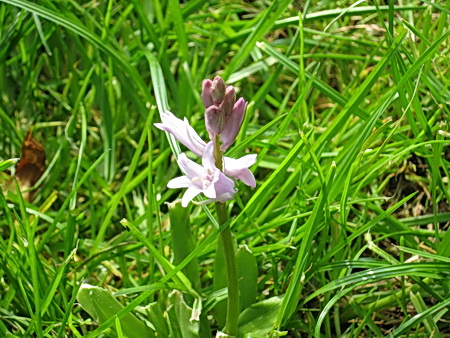 En dan zo maar een onooglijk bloempje in de berm dat daar mooi staat te wezen tussen de grassprieten. Voorjaarshyacint? Of heel iets anders???