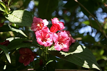 Beginnend in de eigen (achter)tuin… De donkerrode weigelia bloeit, biedt verrassende doorkijkjes. Als je het maar wilt zien…