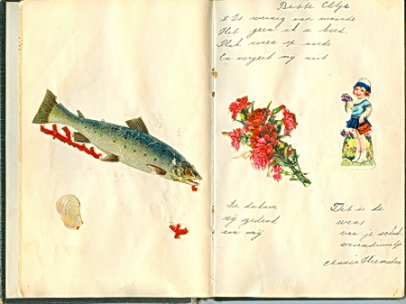 Uit het poesiealbum van Elleke Kloosterman, met een versje en plaatjes van haar vriendinnetje Annie Hiemstra (1)