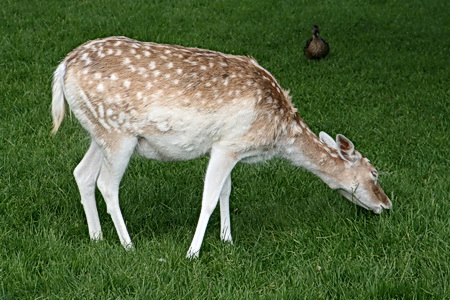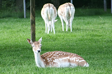 Moe damhert bivakkeert niet vlakbij haar jong, maar houdt wel alle activiteit in en vooral rond de hertenkamp in de gaten. Fotografen worden als minder bedreigend ervaren dan honden…