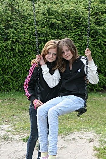 Ter afsluiting twee schommelende jongedames die zo graag eens op de foto willen: Simone en Kayley… Of schrijf je Kayly? Kely? Keli?
