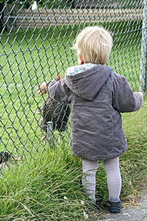 En deze peuter vindt het voeren van de kippen en de eenden heel wat boeiender dan het geren op afstand van mamma en jong damhert….