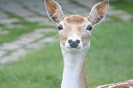 Prachtige kop van de hinde. Een mengsel in de blik van “Nou is het genoeg!” en “Wie ben jij eigenlijk?”