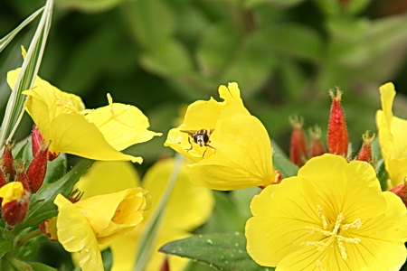 Terug naar huis, een blik geworpen op de pracht en praal in de eigen voortuin waar Gé de dienst uitmaakt (Achter trouwens ook….) Hier enkele teunisbloemen mét insect! Insecten zijn er gelukkig nog, al zijn er zorgwekkende geluiden t.a.v. de honingbijen. Soms wil ik het wel uitschreeuwen: “Mensen, ga toch verantwoord met je leefwereld om, de voedselketens zijn uitermate belangrijk en daar horen de insecten onmisbaar bij!!!
