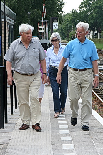 Links Jan Zuijdijk, rechts Sjabbo Datema. In het midden Jannie Hermans, de echtgenote van Jan Zuijdijk. Zij maakte als 8-jarige (ook afkomstig uit Den Bommel) de evacuatieperiode mee in Garmerwolde. Jan Zuijdijk denkt dat zij op spoor 1 arriveerden.