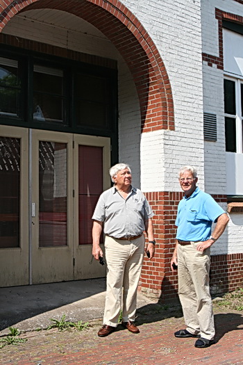 Jan Zuijdijk en Sjabbo Datema bij de ingang van de toenmalige School met de Bijbel aan De Gast in Zuidhorn. Halverwege de jaren vijftig werd de school gesplitst (gevolg van de Vrijmaking) en werden er nieuwe gebouwen betrokken aan de Geert Waldastraat en de Boslaan. In het oude gebouw, dat ook af en toe leeg stond, waren diverse bedrijven gevestigd zoals het Fitnesscentrum en Installatiebedrijf Buist. Inmiddels heeft ook de laatste het pand weer verlaten.