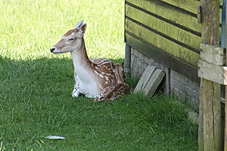 Vier weken is dit jonge damhertje intussen. Het ontwikkelt zich prima, lijkt zich in de hertenkamp tot nu toe prima op haar gemak te voelen!
