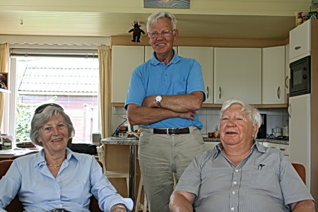 Jan Zuijdijk (rechts) samen met zijn vrouw Jannie Hermans, gastvrij ontvangen door Sjabbo Datema (staand)