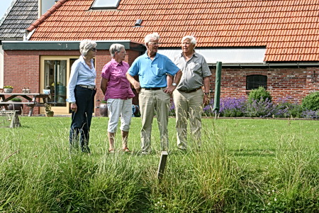 Laatste halte op deze toeristische woensdagmiddag 4 juli 2012: De boerderij van de familie Datema aan het Van Starkenborghkanaal. De zoon van Sjabbo Datema is nu de agrarische ondernemer van dit boerenbedrijf; Sjabbo Datema en zijn vrouw hebben er met hun gezin 35 jaar ‘geboerd’. In de genoemde oorlogsjaren was de vader van Sjabbo de veehouder op deze plek.