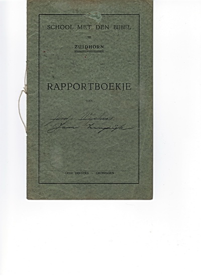 Voorkant rapportboekje dat eerst toebehoorde aan Jantje Wijchers