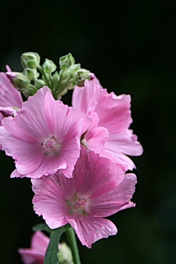 Verder naar achteren in de achtertuin, deze fraaie bloeier. De bloemen lijken op die van de lava(n)thera, maar het is een andere plant. Welke?