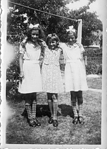 Nog eens de drie meisjes uit de jaren dertig met de tweeling Annijes aan de buitenkant en als middelpunt: Geke Duisterwinkel!