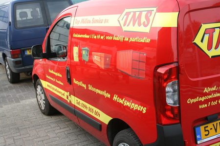 De oude getrouwe blauwe bestelauto is aan zijn pensioen toe. Zijn opvolger staat er pimpelfris bij, in de geelrode bedrijfskleuren: TMS mag zich laten zien!