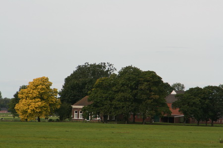 Het handige van een telelens, je kunt wat de moeite meer dan waard is, fors dichterbij halen. Zoals dit ‘stukje’ Oxwerd, inclusief goudgele loofboom. Herfst….