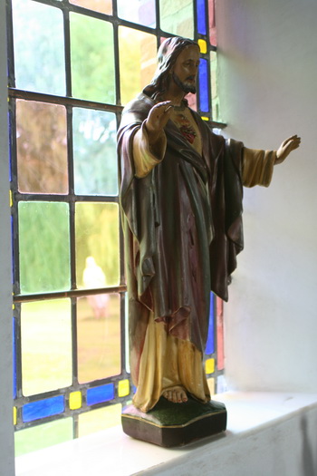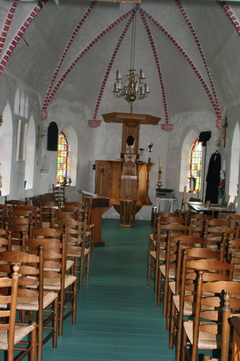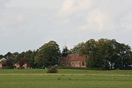 Het kerkje op de wierde van Fransum vanaf het fietspad richting Aduard; helaas, ook hier was de deur op slot…