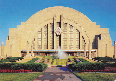 Voorbeeld van een kaart, verstuurd vanuit de United States met een afbeelding van het opvallende Cincinnati Museum (waarin ook het historische en het natuurmuseum, en de bibliotheek…) Deze afzender had niet zoveel zin in om veel te schrijven. Alleen maar “I hope you like this card”.