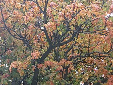 Deze kastanje heeft de smaak al aardig te pakken, waarschijnlijk een van de eerste die straks kaal zal zijn, als de winter zich nadrukkelijker meldt.