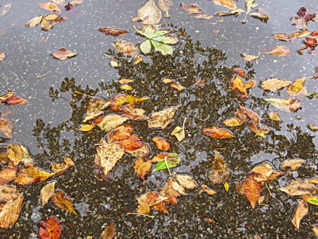 De overvloedige regen van de vrijdagmorgen heeft ook zo haar weerspiegelingscharme…. Herfstbladeren in bad….