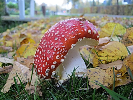 De vliegenzwam bevond zich ‘ergens’ aan de Langestraat-Zuid, misschien niet zo happy met al dat razende verkeer….