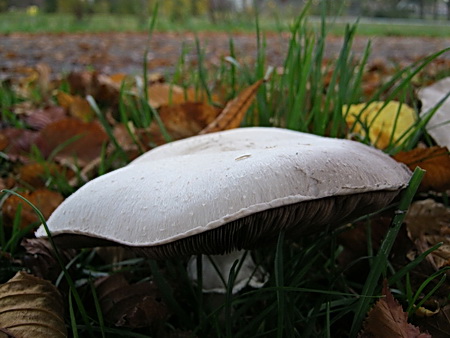 Dezelfde paddenstoel, iets meer van de zijkant genomen. Een plaatjeszwam, zoals je onder de hoed kunt zien. (Ja, iéts weet ik natuurlijk nog wel….)