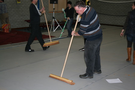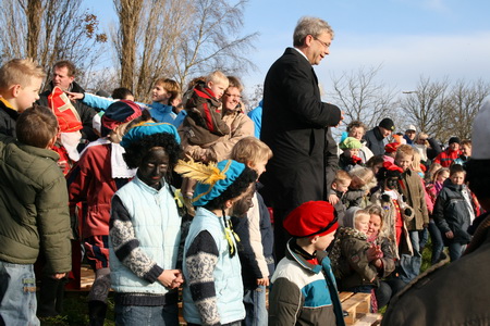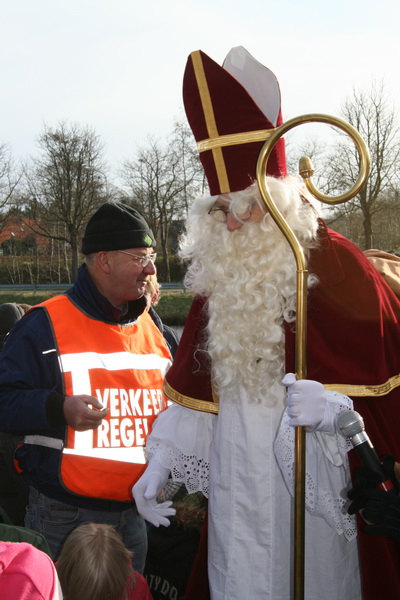Toenmalige wethouder Wiersma, tegenwoordiger eerste burger van De Marne, staat te popelen om de man met de mijter de hand te schudden…