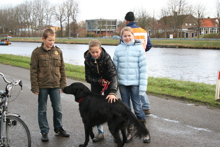 Zelfs huisdieren tonen hun belangstelling voor de Goedheiligman, al verwacht het dier de stoomboot uit de verkeerde richting…. Multifunctioneel inzetbare medewerker Ginus van der Velde heeft de boot al wel in het vizier!