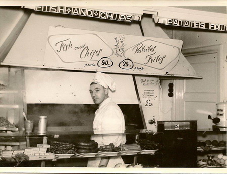 Wie herkent deze geroutineerd ogende patatbakker? Zo te zien wist ie wel meer waren aan de man te brengen, het water loopt je in de mond…. Niet in Noordhorn overigens, maar de man met muts was wel een (oud-)Noordhorner….