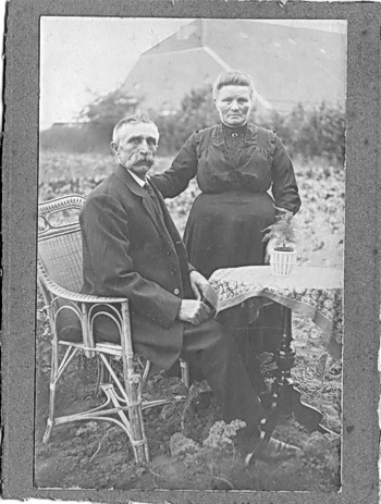 van zijn grootmoeder Sijtske van Hoogen-Roeters, bracht spijtig genoeg weinig monden of pennen in beweging. Wel meldde mevr.Kranenborg-Postema zich, uit Winsum, een nicht van Theo van Hoogen, en dochter van Marie van Hoogen. Zij is er nagenoeg zeker van dat het echtpaar Roeters op de foto staat, “Klaas Roeters met zijn Aaf”! (Klaas Roeters heeft aan de Oosterweg gewoond, tegenover de school, waar nu Tjibbe en