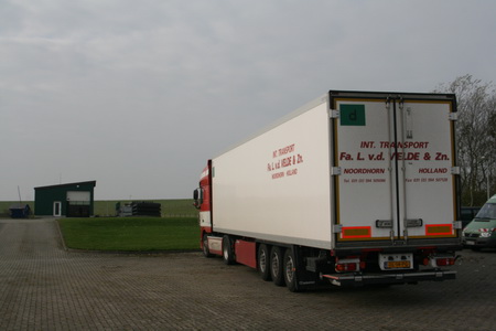 Ruim voor de afgesproken tijd (8.30 uur) meld ik me bij wegreuschauffeur Lukas van der Velde. “Zullen we dan maar?” We lopen naar de klaarstaande DAF-truck met oplegger. Eerst krijg ik uitleg over de bijrijderstoel die zich kan aanpassen aan het gewicht van de betreffende persoon. Tenminste, als je het juiste klepje omhoog doet, hetgeen ik prompt vergeet… Lukas’echtgenote Dineke gidst ons de Langestraat op. Daar gaan we, op naar ‘Eagle Ship Supply’ op het industrieterrein aan de oostkant van de Stad. Prinsheerlijk zit ik in de cabine, een rijdende uitkijktoren! Lukas van der Velde is een ervaren chauffeur, hij laat zich in het drukke verkeer “de kop nait gek moaken…” We moeten aan de Koningsweg zijn. Na een extra rondje (we missen een afslag, dat krijg je met pratende bijrijders…) komen we tijdig ter plekke. De ontvangst is kameraadschappelijk, de sfeer gemoedelijk, de omstandigheden aangenaam: WC + koffie! En táárt, want medewerkster Ilona beleeft haar laatste Eagle-dag, ze gaat een jaar op avontuur in Australië! De kersenvlaai smaakt voortreffelijk, de koffie ook en nadat de desbetreffende goederen zijn ingeladen (deels in het vriesgedeelte, – 18°! Deels in het vorstvrije gedeelte, 5°, ingetoetst via een “smart” apparaat aan de buitenkant van de trailer), zetten we koers naar onze oosterburen. Eaglemedewerker Martin rijdt mee, de cabine is groot genoeg, inclusief twee slaapplaatsen… Ik kijk mijn ogen uit, zowel in Oost-Groningen (mijn thuisland) als in de omgeving van Emden. Noordelijker wordt het kaler, natuurlijker, minder dicht bevolkt. Wel een groep vogelkijkers en een goed lopende eettent midden in de Duitse verlatenheid.