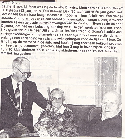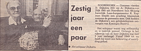 Aan deze foto moest ik denken, toen ik in een plakboek van mevr.Riek Tempel-Hekkema (juist, de overbuurvrouw van de Dijkstra’s) de volgende knipsels tegenkwam: