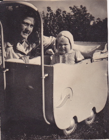 Prachtige foto! Centraal de oude, klassieke kinderwagen van vlak na de oorlog. Daarin de 2e Annie Hiemstra. Maar wie is de vrouw links?????