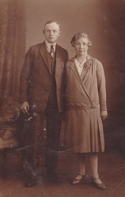 Nog even zo’n 70 jaar terug in de Noordhorner tijd…. Terug naar Lukas Hiemstra, de timmerman/aannemer, die voor de oorlog zijn nieuwe woning zelf bouwde in de bocht van de Achterweg (nu: Oosterweg), tegenover het schakelstation (het ‘stroomhokje’) en daar ging wonen met zijn vrouw Jo Ottens en zijn dochtertje Annie (geb. 1929). Lukas Hiemstra was ook de bouwer van het huis elders aan de Achterweg, naast de aloude kastanje, waar Jan Drenth en zijn vrouw Jantje introkken. (Jantje was een zus van Lukas Hiemstra). Het tragische ongeluk dat Annie Hiemstra (1) het leven kostte, heb ik al eerder beschreven. Later, direct na het beëindigen van de Tweede Wereldoorlog, kregen Lukas en Jo opnieuw een gezonde dochter die zij wederom Annie noemden. Deze Annie trouwde later met Geert Schoonbeek, maar is inmiddels al meer dan 15 jaar weduwe. Annie (2) woont in het ouderlijk huis te Roden, waarnaar de familie Hiemstra in 1952 vanuit Noordhorn verhuisde. (De familie Diepstra kocht het huis aan de Achterweg). Van de 2e Annie zijn ook de volgende foto’s afkomstig. De eerste een fraaie foto van Lukas en Jo Hiemstra, in de van de vroegere tijd bekende bruine tint. De tweede een foto met de 2e Annie in de kinderwagen met een onbekende vrouw. Wie weet wie deze vrouw is, links op de foto? (De tweede Annie heeft het idee dat het om een vriendin van de eerste Annie gaat…):
