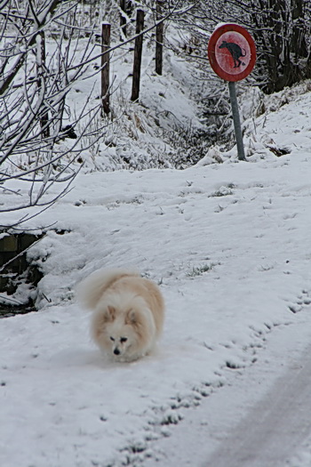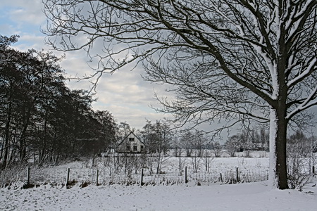 In de verte de besneeuwde hoeve van Nico Vermue. Dichterbij te halen, maar zo in de (schijnbare) verlatenheid heeft het ook wel wat…