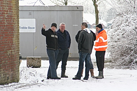 Zelfs onder deze barre omstandigheden wordt er vergaderd door Noordhorn-doeners, gemoedelijk. Dit is de echte dorpselite!
