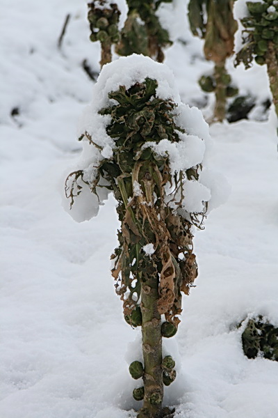 De spruiten op de volkstuin maken een ietwat mistroostige indruk, maar als kunstwerk heeft dit beeld wel wat…