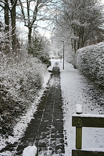 Het verbindingspad tussen Noordwijkweg en Borgweg, vooral bekend bij hondenuitlaters. Strontloos schoeisel? Op de tegels blijven!