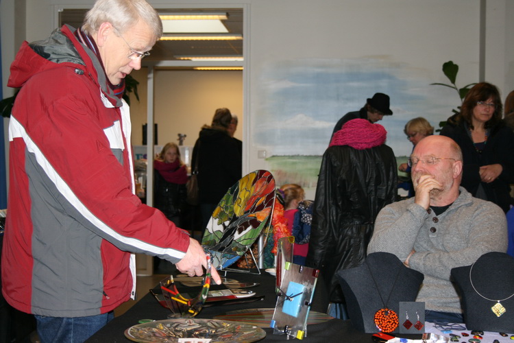Schilderwerk op glas? Glas in lood? Emailleren? Een kundige kijker en een geïnteresseerde standhouder….