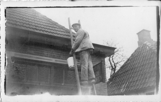 De genoemde Tjeerd van Hoogen op oudere leeftijd. OM wat bij te verdienen maakte hij toen dakgoten schoon….